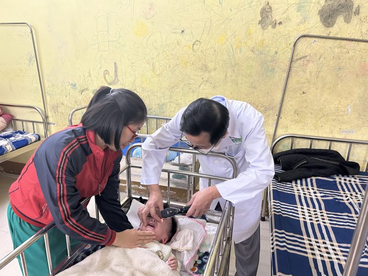 Các bác sĩ đầu ngành nhãn khoa của Thái Hà Eye Care tận tình thăm khám cho các đối tượng yếu thế tại Trung tâm